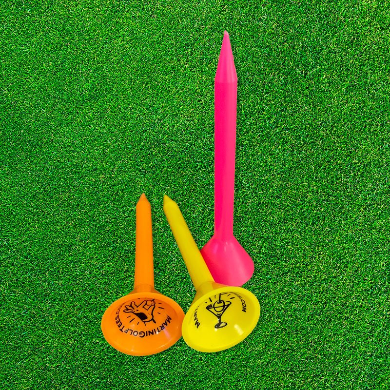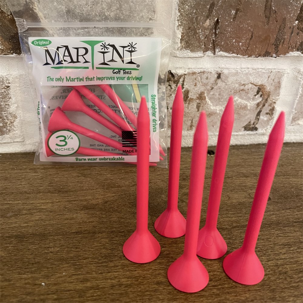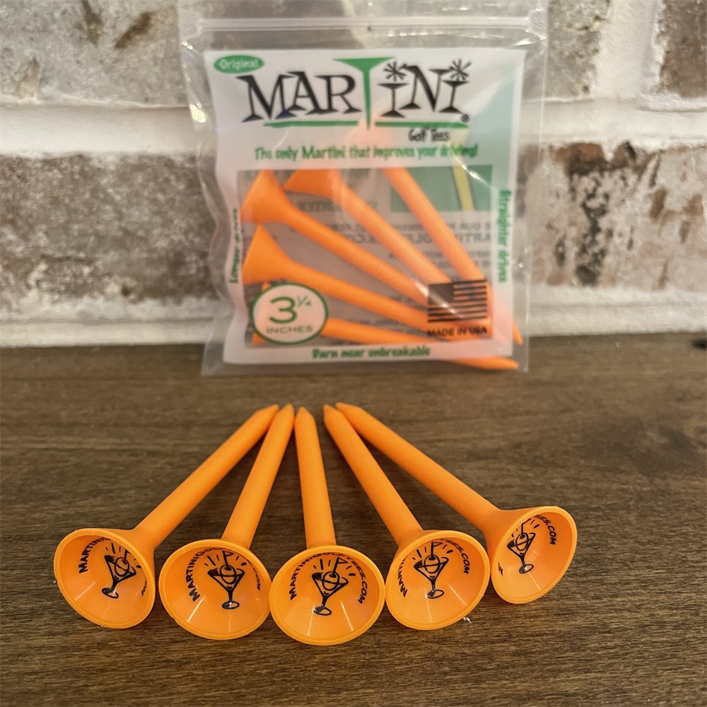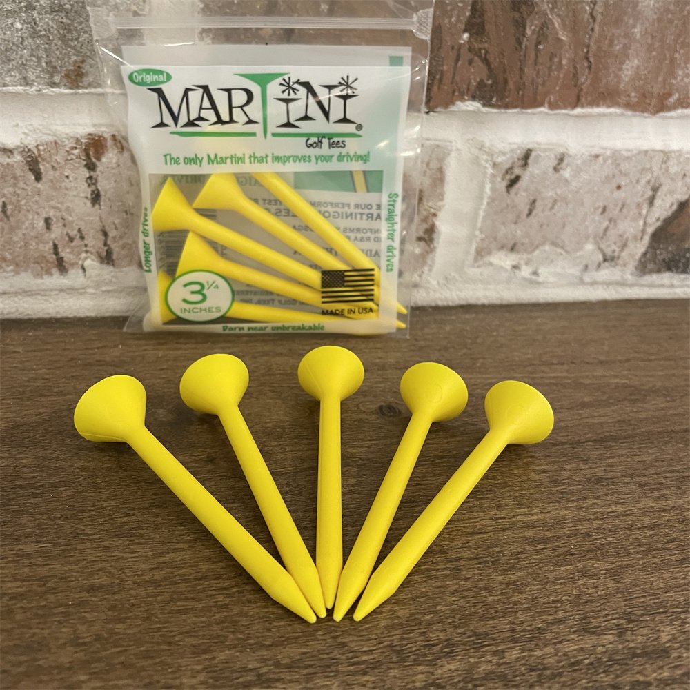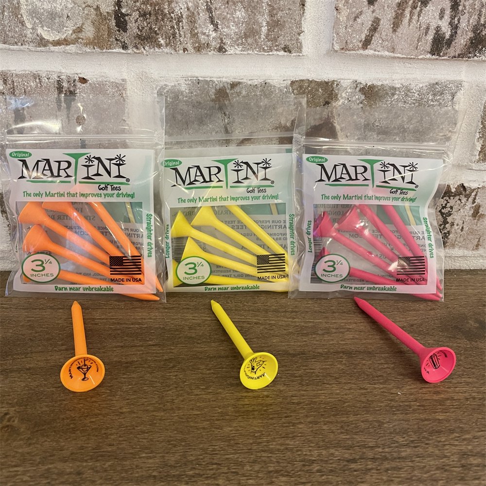Martini Golf TeesTee Size: 3.25”The Original Martini Tee is the one that started it all. The large cup allows you to tilt the tee forward for longer, straighter drives. The large cup makes it easier to tee the ball every time you’re on the tee.